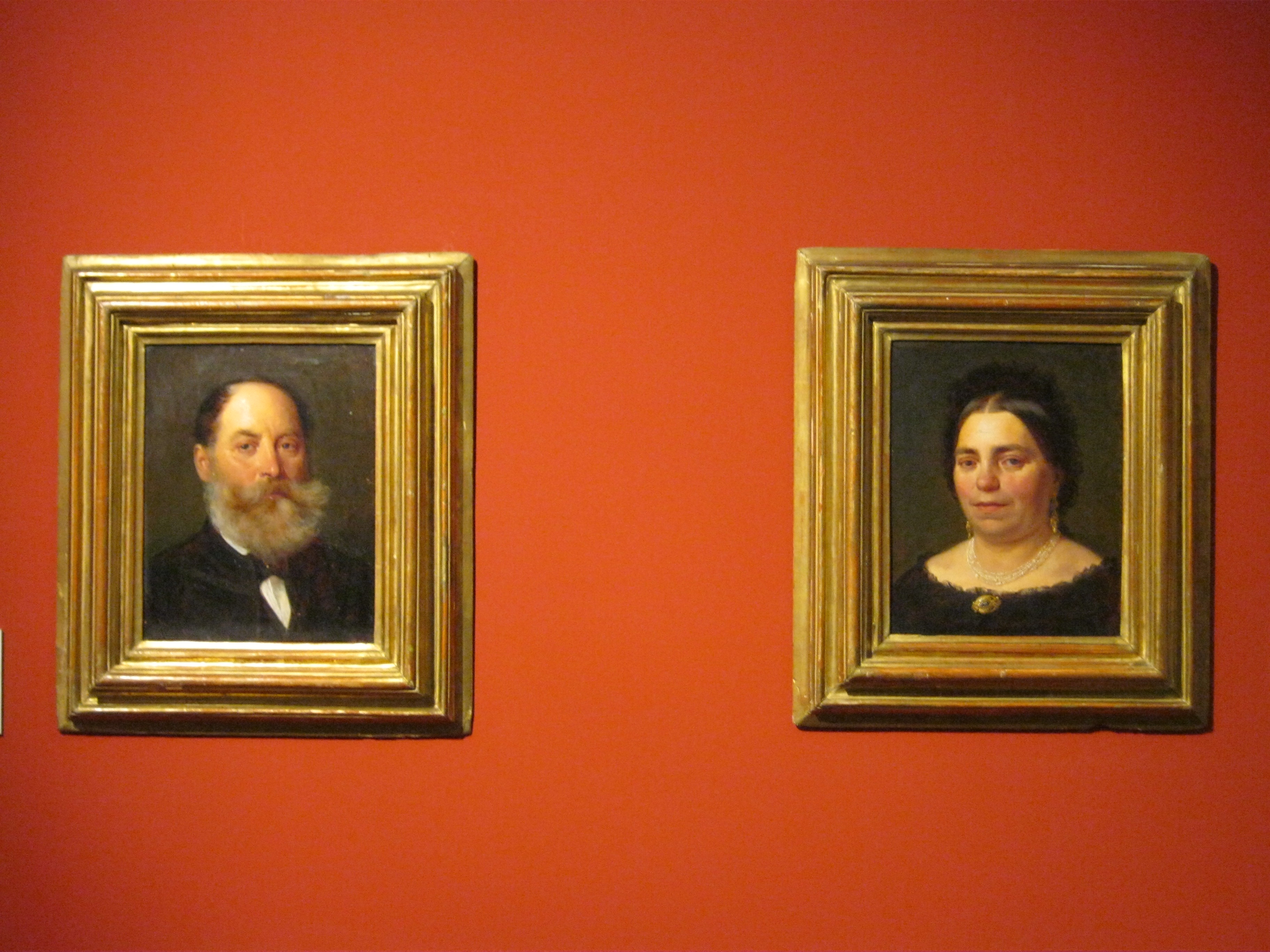 Nyilvános 1396 | 1929 | Nyíregyháza, Benczúr tér 21. Jósa András Múzeum | Magyarország egyik legrégibb múzeumát Dr. Jósa András alapította 1868-ban, akinek ma nevét viseli. A képen Benczúr Gyula emlékszobájának részlete. A nagy magyar festőművész 1844-ben Nyíregyházán született (lásd: Nyíregyháza, Kossuth tér 8.), apja gyógyszerész volt. A képen látható festményeken a művész szüleit örökítette meg. Felh. irod.: Látnivalók Szabolcs-Szatmár-Bereg megyében. Miskolc, Well-PRess, 1999 http://jam.nyirbone.hu A fénykép 2010 augusztus elején készült. |