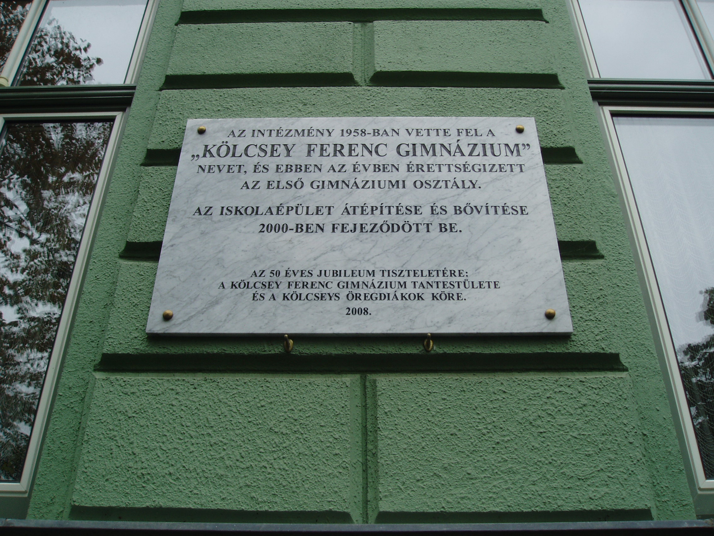 Nyilvános 1334 | 1729 | Nyíregyháza, Széchenyi utca 6. Kölcsey Ferenc Gimnázium | Épületét 1901-ben, Barzó Mihály tervei alapján, pénzügyigazgatósági székháznak emelték. 1925-től, 1957-ben történt megszűnéséig középfokú tanítóképző intézetként működött. Azóta a Kölcsey gimnázium otthona. Az első gimnáziumi osztály 1954/55-ben még egy korábbi épületben kezdte meg a tanulást, de már itt érettségizett 1959-ben. Az iskolaépület homlokzatán több emléktábla idézi az egykori tanítóképző, majd gimnázium neves tanárainak és diákjainak alakját. Felh. irod.: www.kolcsey-nyh.sulinet.hu A fénykép 2010 augusztus elején készült |