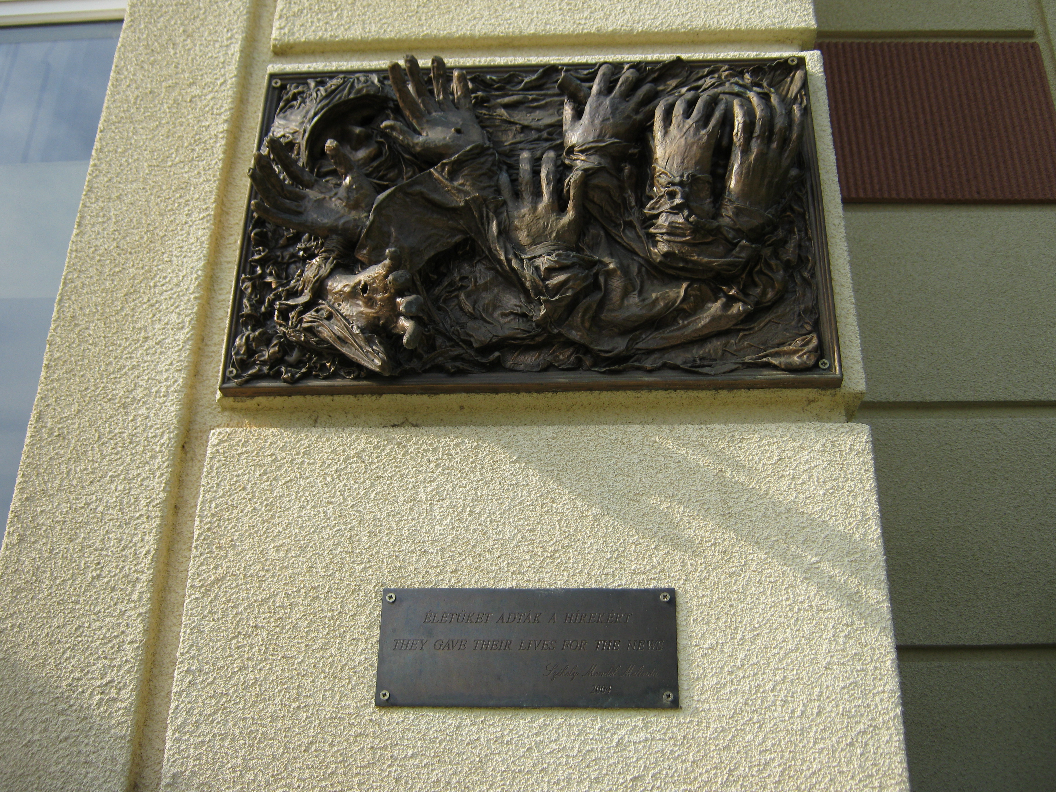 Nyilvános 1354 | 1745 | Nyíregyháza-Sóstó, Krúdy-Vigadó | A műemlékké nyilvánított Krúdy Vigadó Sóstófürdő központjában emelkedik. A Fürdőházat is tervező Pazár István tervei szerint 1911-ben épült szecessziós stílusban, 2002-ben gyönyörűen felújították. A képen látható, a Vigadó homlokzatán elhelyezett dombormű Székely Mendel Melinda alkotása. Azokról az újságírókról, tudósítókról, fotósokról emlékezik meg, akik szerte a világon hivatásuk teljesítése közben váltak áldozatokká. Ez Európa egyetlen ilyen tartalmú emléktáblája. 2004 májusában avatták fel, amikor itt rendezték meg a Tudósítók Világtalálkozóját. Felh. irod.: www.krudyvigado.hu www.beszelamarvany.hu A fénykép 2010 augusztus elején készült |