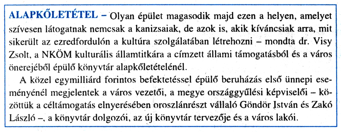 Kanizsa 1999. október 28. 43. szám 9. oldal - Alapkőleté ...