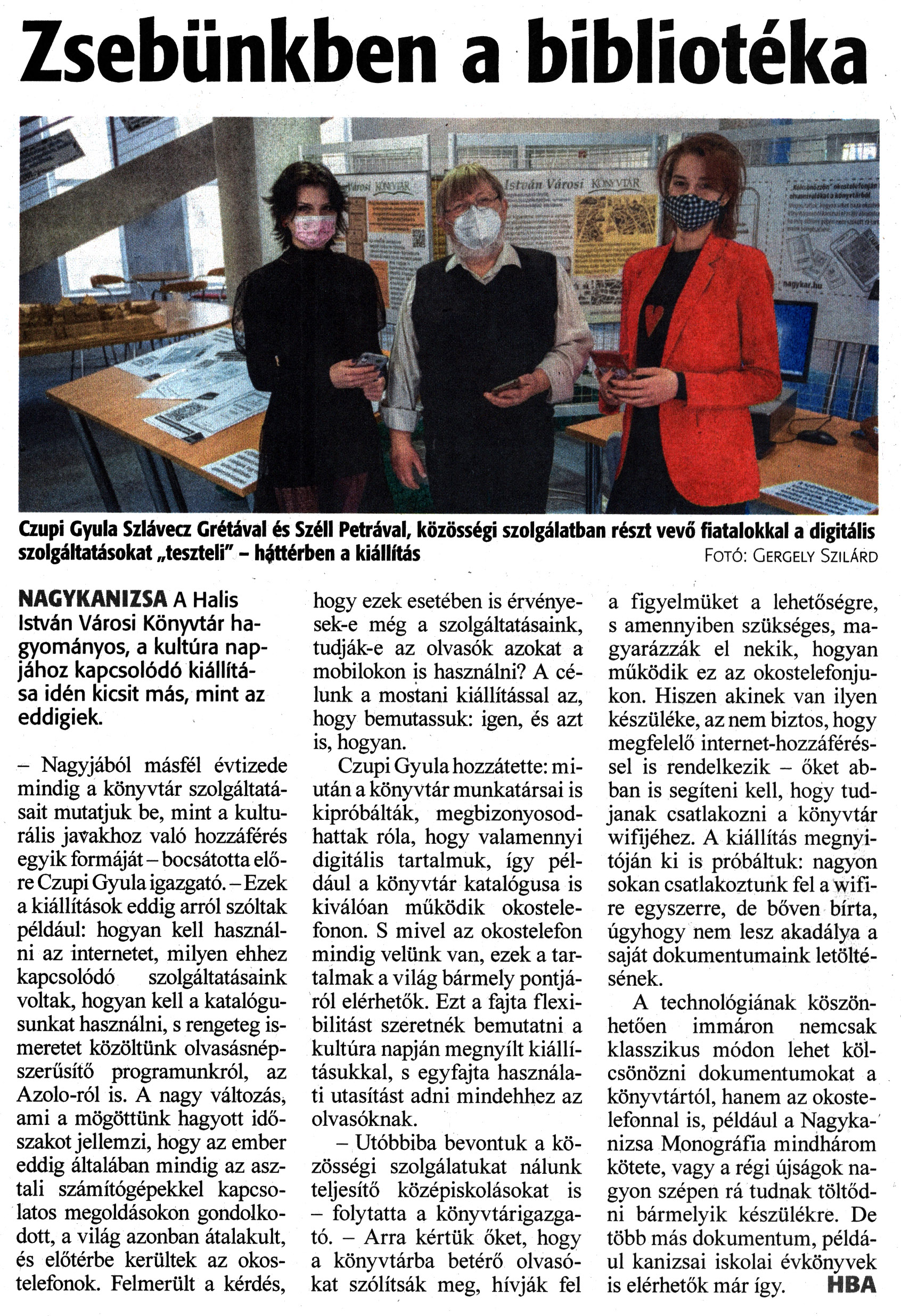 Nyilvános 1698 | 2128 | Zalai Hírlap 2022. február 3. 28. szám 4. oldal | Zsebünkben a bibliotéka NAGYKANIZSA A Halis István Városi Könyvtár hagyományos, a kultúra napjához kapcsolódó kiállítása idén kicsit más, mint az eddigiek. - Nagyjából másfél évtizede mindig a könyvtár szolgáltatásait mutatjuk be, mint a kulturális javakhoz való hozzáférés egyik formáját - bocsátotta előre Czupi Gyula igazgató. - Ezek a kiállítások eddig arról szóltak például: hogyan kell használni az internetet, milyen ehhez kapcsolódó szolgáltatásaink voltak, hogyan kell a katalógusunkat használni, s rengeteg ismeretet közöltünk olvasásnépszerűsítő programunkról, az Azolo-ról is. A nagy változás, ami a mögöttünk hagyott időszakot jellemzi, hogy az ember eddig általában mindig az asztali számítógépekkel kapcsolatos megoldásokon gondolkodott, a világ azonban átalakult, és előtérbe kerültek az okostelefonok. Felmerült a kérdés, hogy ezek esetében is érvényesek-e még a szolgáltatásaink, tudják-e az olvasók azokat a mobilokon is használni? A célunk a mostani kiállítással az, hogy bemutassuk: igen, és azt is, hogyan. Czupi Gyula hozzátette: miután a könyvtár munkatársai is kipróbálták, megbizonyosodhattak róla, hogy valamennyi digitális tartalmuk, így például a könyvtár katalógusa is kiválóan működik okostelefonon. S mivel az okostelefon mindig velünk van, ezek a tartalmak a világ bármely pontjáról elérhetők. Ezt a fajta flexibilitást szeretnék bemutatni a kultúra napján megnyílt kiállításukkal, s egyfajta használati utasítást adni mindehhez az olvasóknak. - Utóbbiba bevontuk a közösségi szolgálatukat nálunk teljesítő középiskolásokat is - folytatta a könyvtárigazgató. - Arra kértük őket, hogy a könyvtárba betérő olvasókat szólítsák meg, hívják fel a figyelmüket a lehetőségre, s amennyiben szükséges, magyarázzák el nekik, hogyan működik ez az okostelefonjukon. Hiszen akinek van ilyen készüléke, az nem biztos, hogy megfelelő internet-hozzáféréssel is rendelkezik - őket abban is segíteni kell, hogy tudjanak csatlakozni a könyvtár wifijéhez. A kiállítás megnyitóján ki is próbáltuk: nagyon sokan csatlakoztunk fel a wifi-re egyszerre, de bőven bírta, úgyhogy nem lesz akadálya a saját dokumentumaink letöltésének. A technológiának köszönhetően immáron nemcsak klasszikus módon lehet kölcsönözni dokumentumokat a könyvtártól, hanem az okostelefonnal is, például a Nagykanizsa Monográfia mindhárom kötete, vagy a régi újságok nagyon szépen rá tudnak töltődni bármelyik készülékre. De több más dokumentum, például kanizsai iskolai évkönyvek is elérhetők már így. HBA Czupi Gyula Szlávecz Grétával és Széll Petrával, közösségi szolgálatban részt vevő fiatalokkal a digitális szolgáltatásokat „teszteli" - háttérben a kiállítás Fotó: Gergely Szilárd |