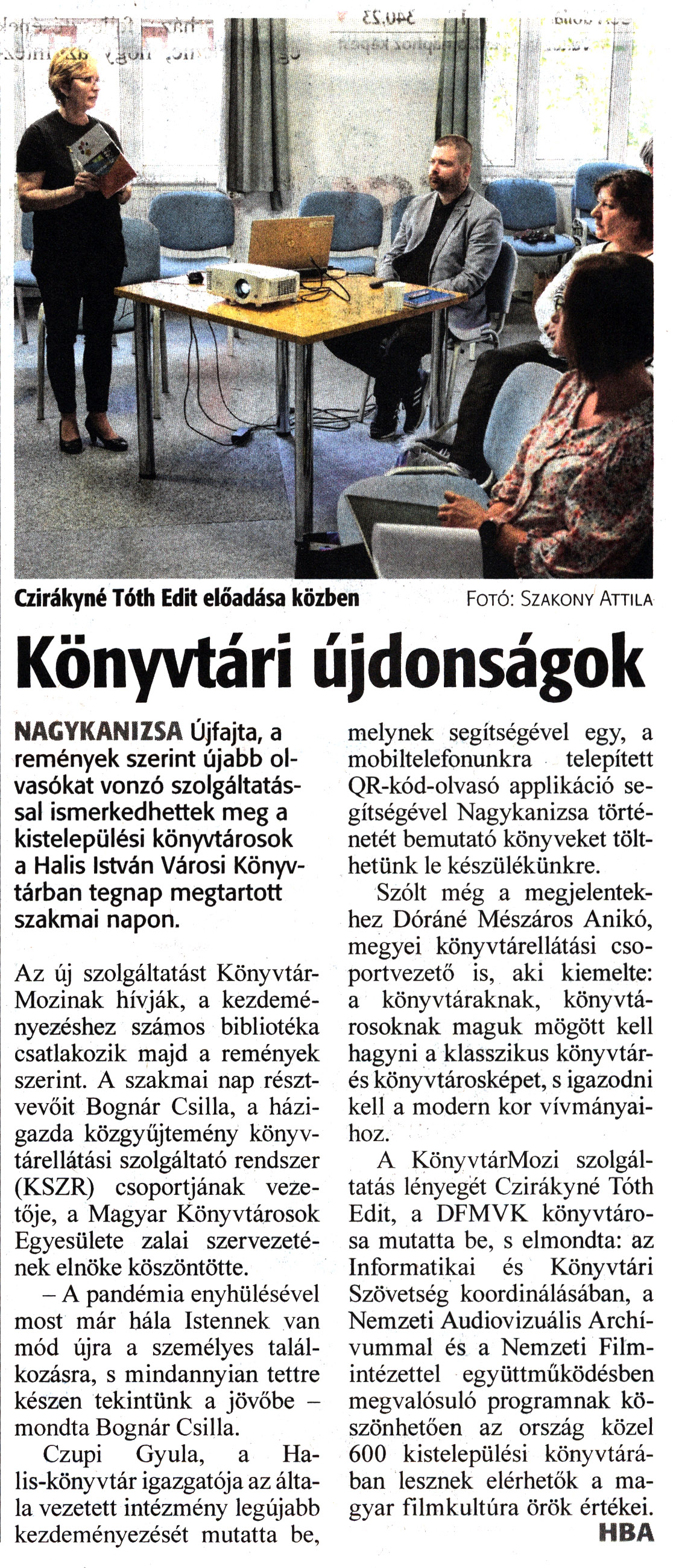 Nyilvános 1588 | 1928 | Zalai Hírlap 2022. április 22. 92. szám 3. oldal | Könyvtári újdonságok NAGYKANIZSA Újfajta, a remények szerint újabb olvasókat vonzó szolgáltatással ismerkedhettek meg a kistelepülési könyvtárosok a Halis István Városi Könyvtárban tegnap megtartott szakmai napon. Az új szolgáltatást Könyvtár-Mozinak hívják, a kezdeményezéshez számos bibliotéka csatlakozik majd a remények szerint. A szakmai nap résztvevőit Bognár Csilla, a házigazda közgyűjtemény könyvtárellátási szolgáltató rendszer (KSZR) csoportjának vezetője, a Magyar Könyvtárosok Egyesülete zalai szervezetének elnöke köszöntötte. - A pandémia enyhülésével most már hála Istennek van mód újra a személyes találkozásra, s mindannyian tettre készen tekintünk a jövőbe -mondta Bognár Csilla. Czupi Gyula, a Halis-könyvtár igazgatója az általa vezetett intézmény legújabb kezdeményezését mutatta be, melynek segítségével egy, a mobiltelefonunkra telepített QR-kód-olvasó applikáció segítségével Nagykanizsa történetét bemutató könyveket tölthetünk le készülékünkre. Szólt még a megjelentekhez Dóráné Mészáros Anikó, megyei könyvtárellátási csoportvezető is, aki kiemelte: a könyvtáraknak, könyvtárosoknak maguk mögött kell hagyni a klasszikus könyvtár- és könyvtárosképet, s igazodni kell a modern kor vívmányaihoz. A KönyvtárMozi szolgáltatás lényegét Czirákyné Tóth Edit, a DFMVK könyvtárosa mutatta be, s elmondta: az Informatikai és Könyvtári Szövetség koordinálásában, a Nemzeti Audiovizuális Archívummal és a Nemzeti Filmintézettel együttműködésben megvalósuló programnak köszönhetően az ország közel 600 kistelepülési könyvtárában lesznek elérhetők a magyar filmkultúra örök értékei. HBA Czirákyné Tóth Edit előadása közben Fotó: Szakony Attila |