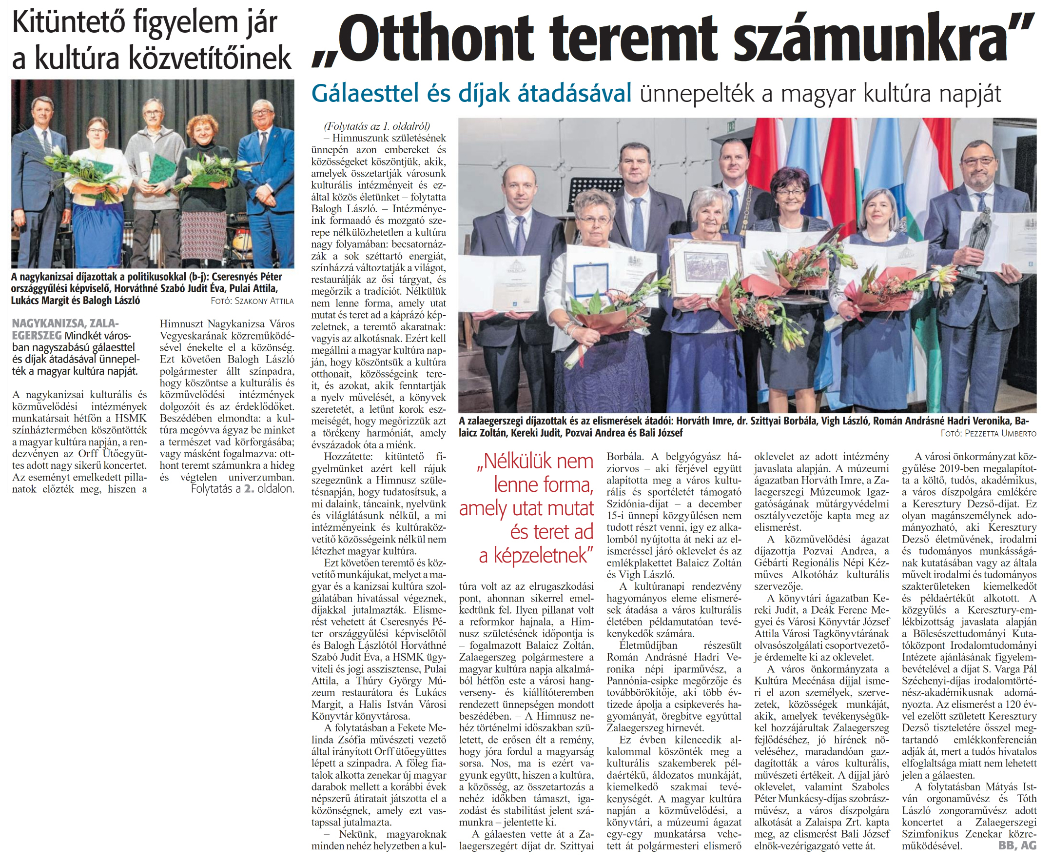 Zalai Hírlap 2024 01 24 020sz 01-02old - Kitüntető figyelem jár a kultúra közvetítőinek.jpg