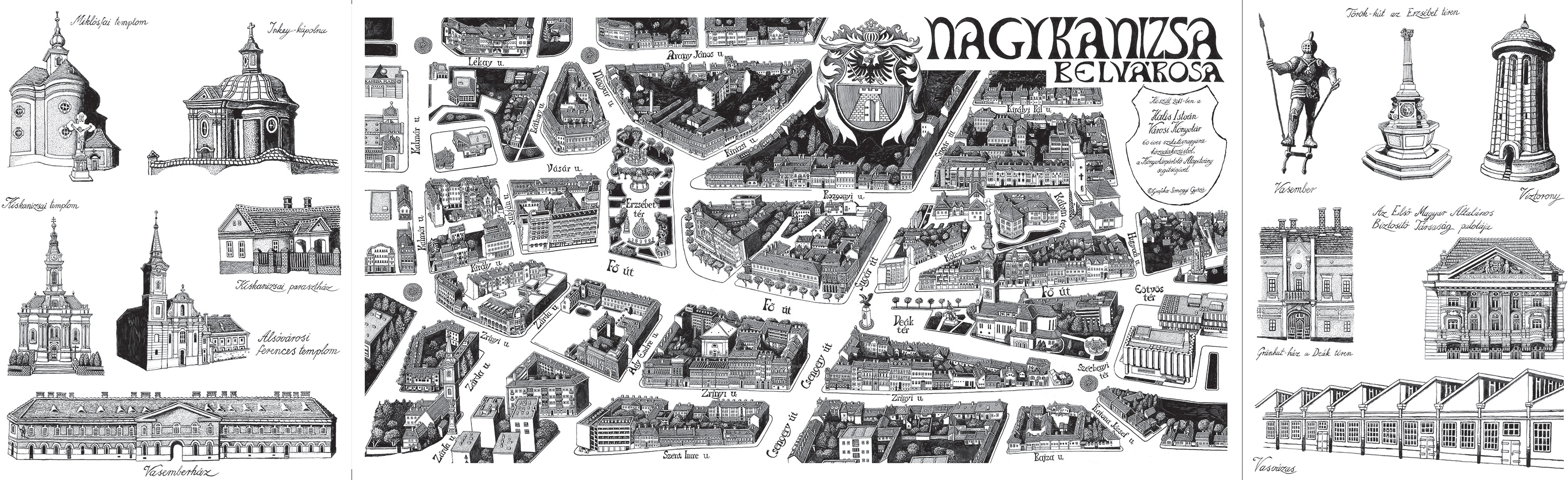 Nyilvános 3147 | 12194 | Rövid leírás | Teljes leírás (387 B) | Nagykanizsa belvárosa madártávlati képe - Somogyi Győző alkotása - nagy méretben megtekinthető a könyvtárban, kis méretben meg is vásárolható a könyvtártól: A 30x100 cm-es Nagykanizsa belvárosa madártávlati kép érvényes olvasói tagsággal rendelkezők számára 200 Ft-ba kerül, egyébként 300 Ft, fóliázott változatban 600 Ft (olvasóinknak 500 Ft). |