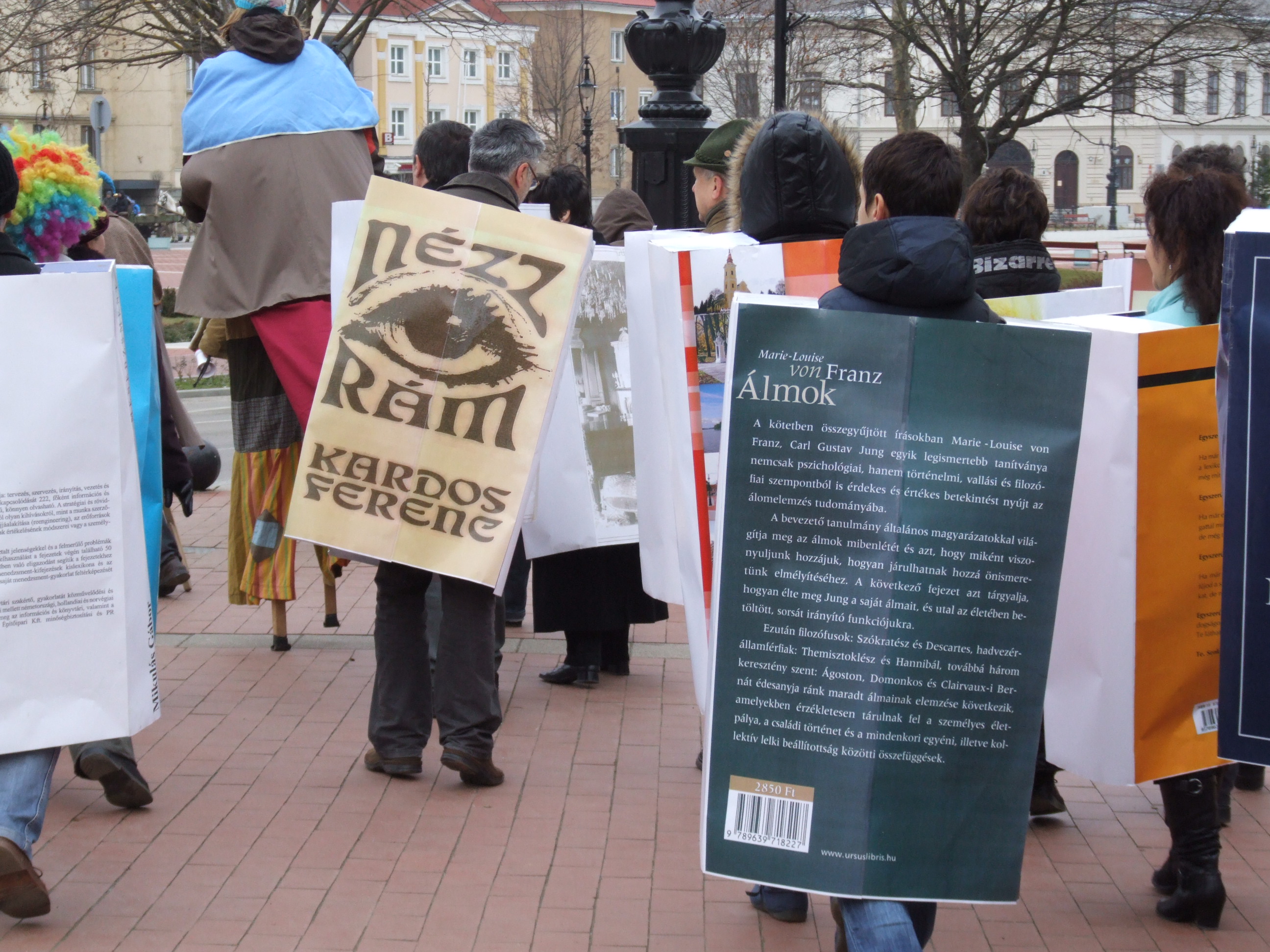 Nyilvános 1400 | 1812 | 2013. február 9. A farsangi fánkfesztiválra készülve felhívásban kértük olvasóinkat, hogy öltsék magukra kedves könyvüket. Egy „könyvespolcnyi” jelentkező vette magára kedves olvasmányát, az ő vonulásukról készültek ezek a képek. A környezetükben néhol láthatók a Nagykanizsai Gólyalábasok, akik szintén a könyvtárhoz kötődnek. A „felvonuló kötetek” a könyvtár épületében még megtekinthetők. | |