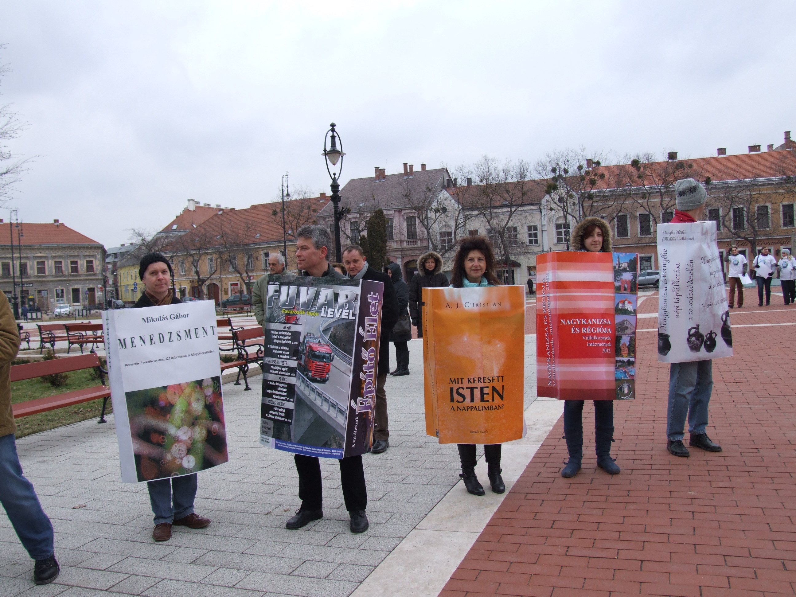 Nyilvános 1398 | 1650 | 2013. február 9. A farsangi fánkfesztiválra készülve felhívásban kértük olvasóinkat, hogy öltsék magukra kedves könyvüket. Egy „könyvespolcnyi” jelentkező vette magára kedves olvasmányát, az ő vonulásukról készültek ezek a képek. A környezetükben néhol láthatók a Nagykanizsai Gólyalábasok, akik szintén a könyvtárhoz kötődnek. A „felvonuló kötetek” a könyvtár épületében még megtekinthetők. | |