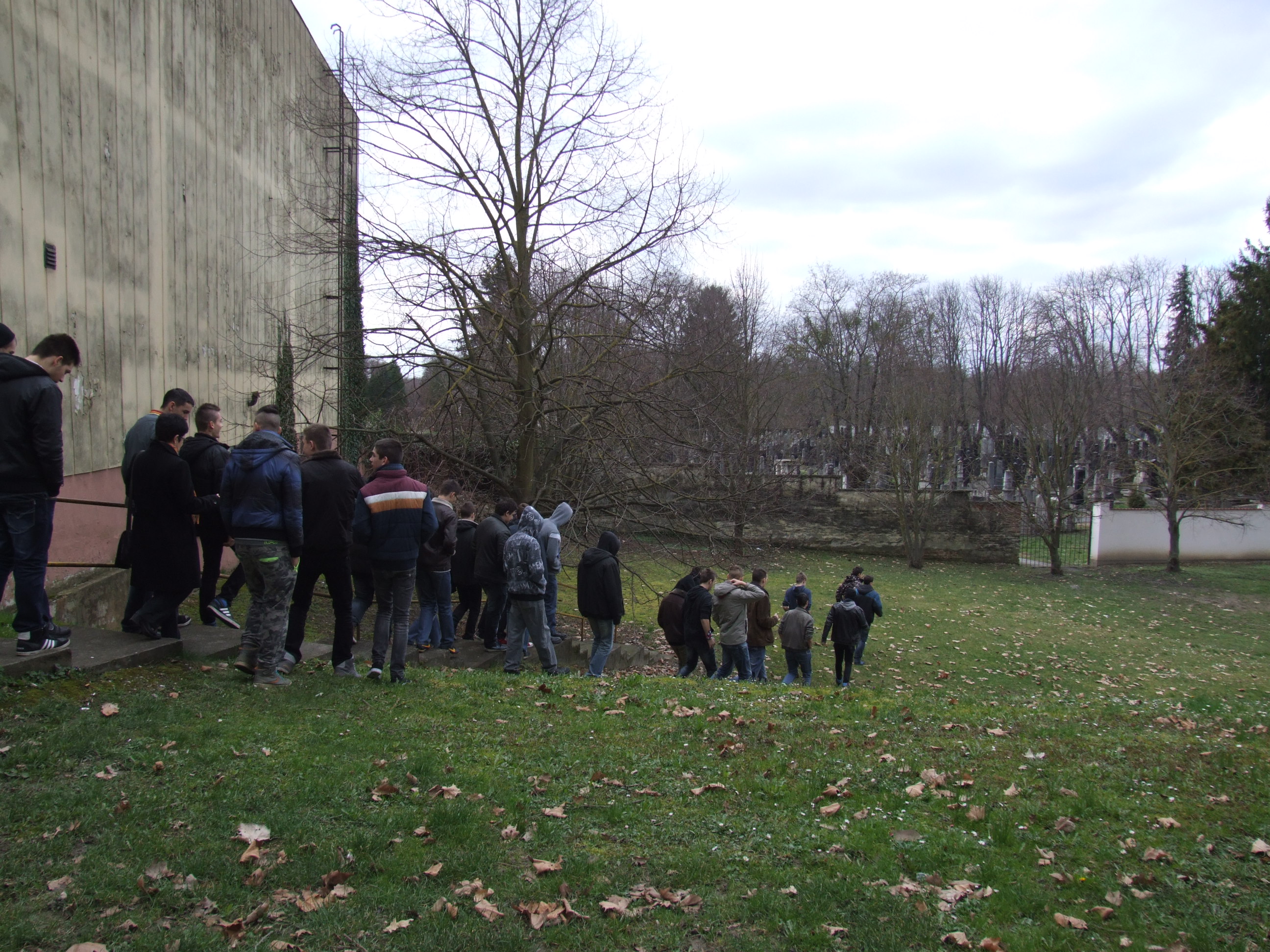 2014.03.04. Cserháti iskolások (10.d) a Zsidó temetőnél 10.JPG