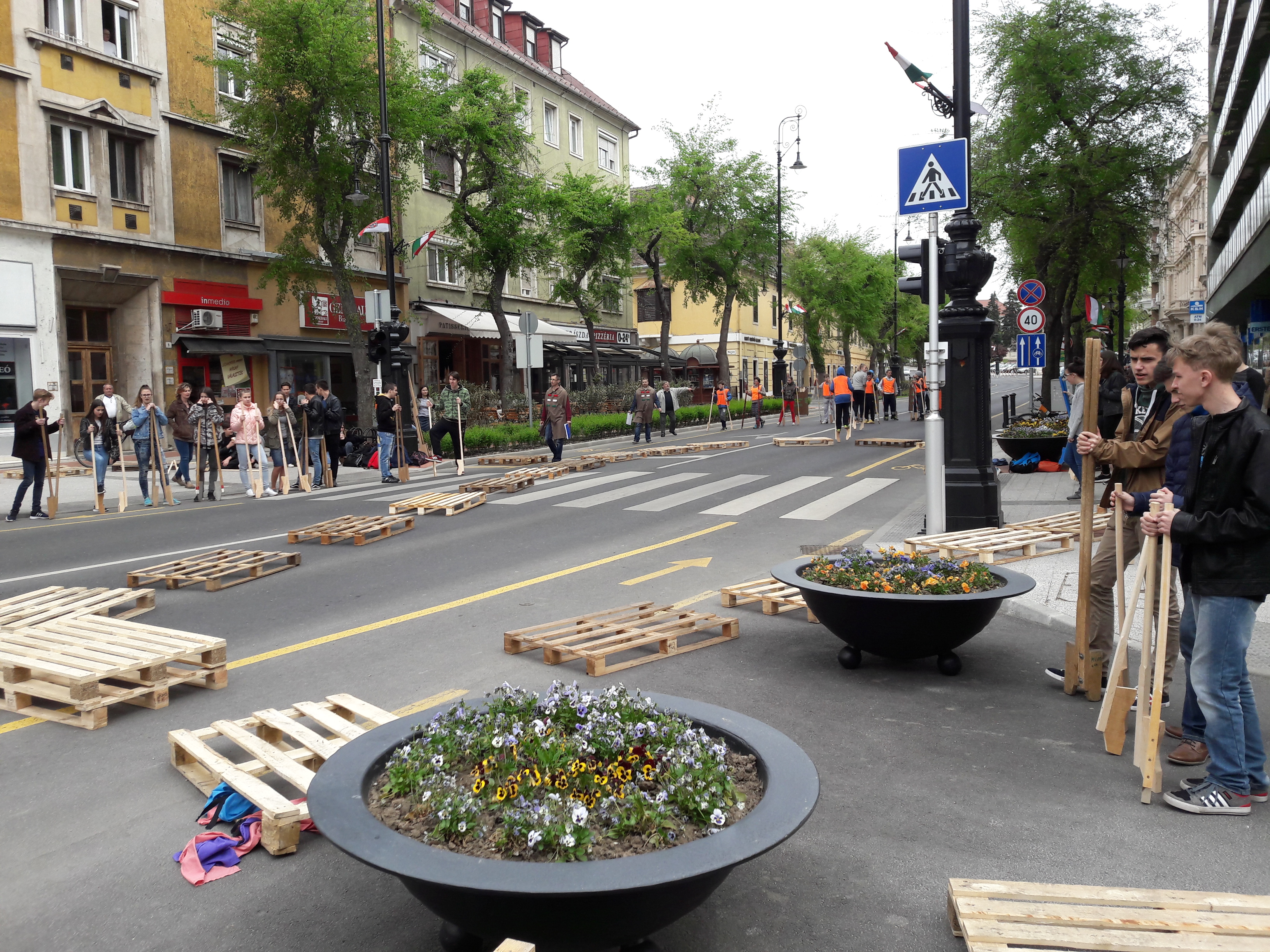 2017.04.27. Tömeges gólyalábra állás a Fő út - Ady u. kereszteződésében