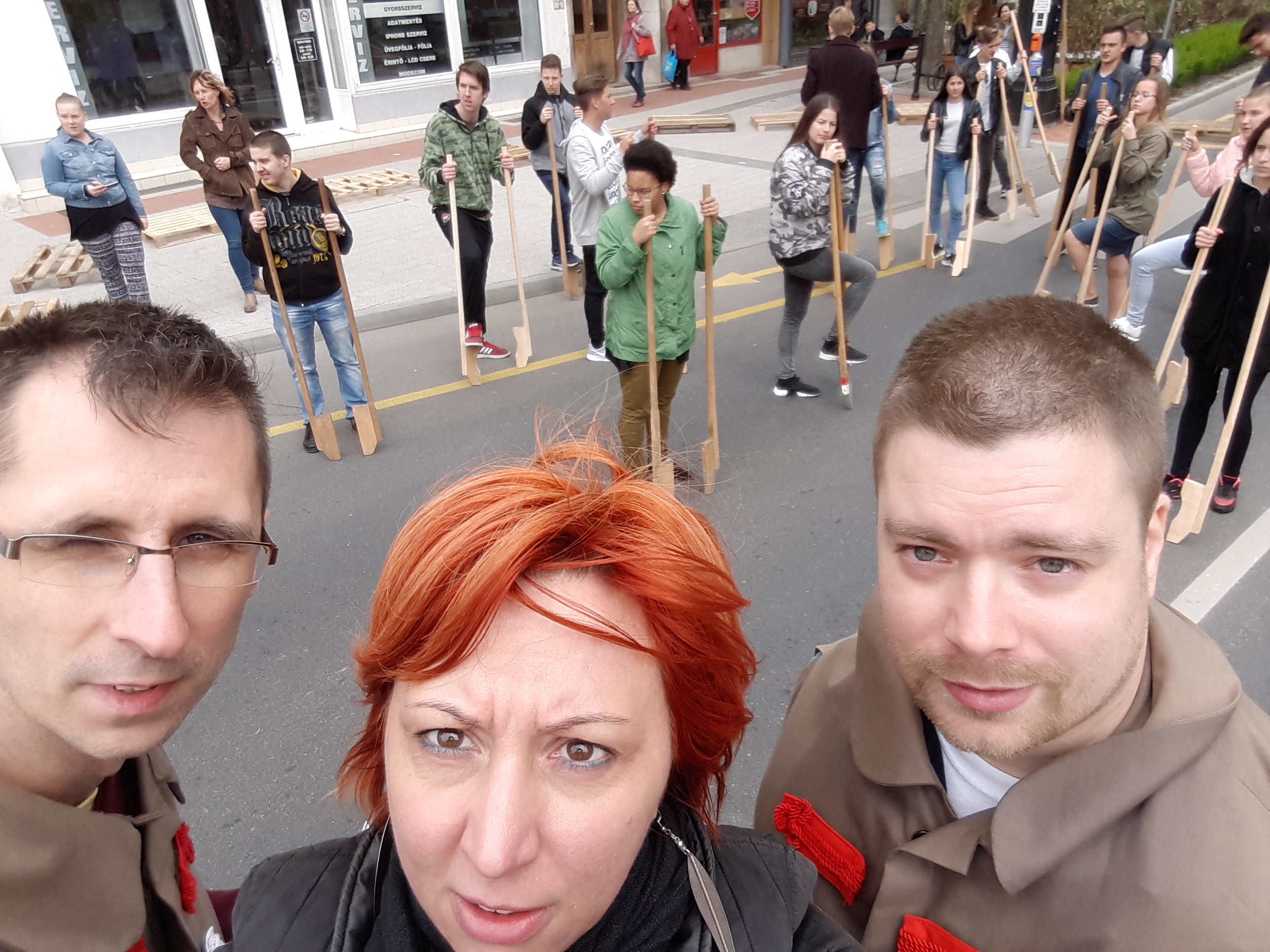 2017.04.27. Tömeges gólyalábra állás a Fő út - Ady u. kereszteződésében