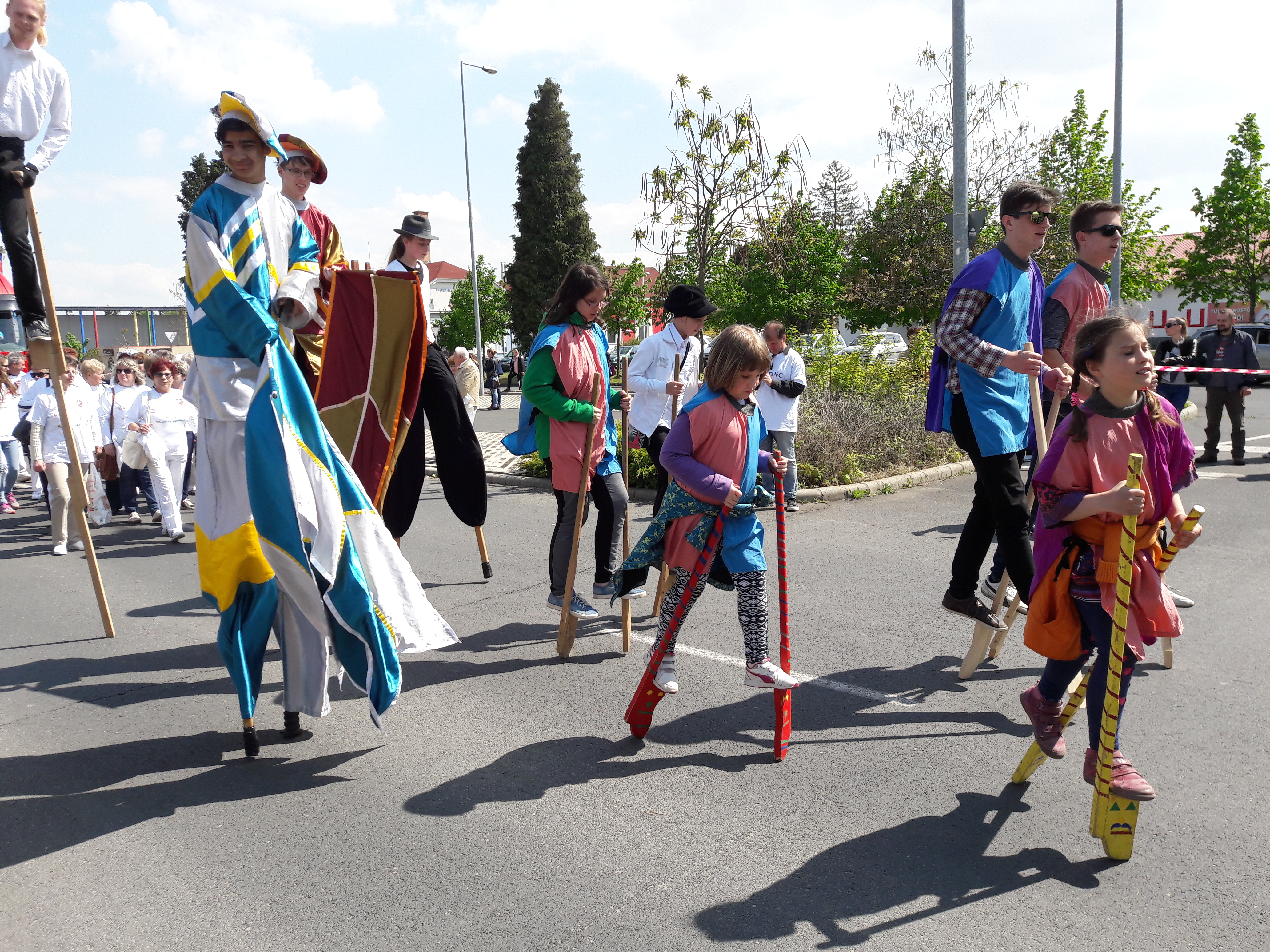2017.04.30. Utca Tánc Fesztivál - Vonulás - Gólyalábasok, fekete kalapos táncosok, meridián tornások