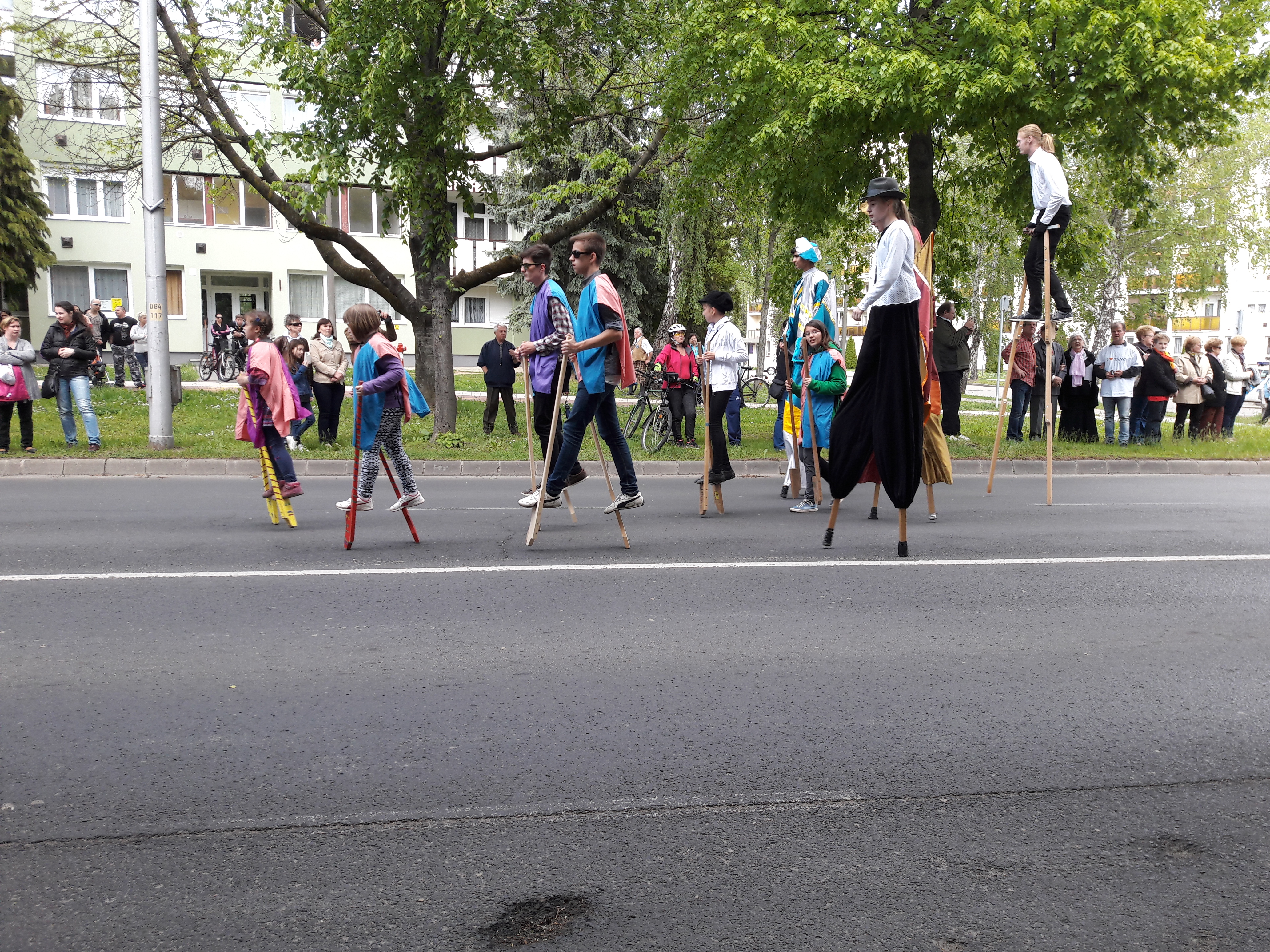 2017.04.30. Utca Tánc Fesztivál - Vonulás - Gólyalábasok, fekete kalapos táncosok, meridián tornások