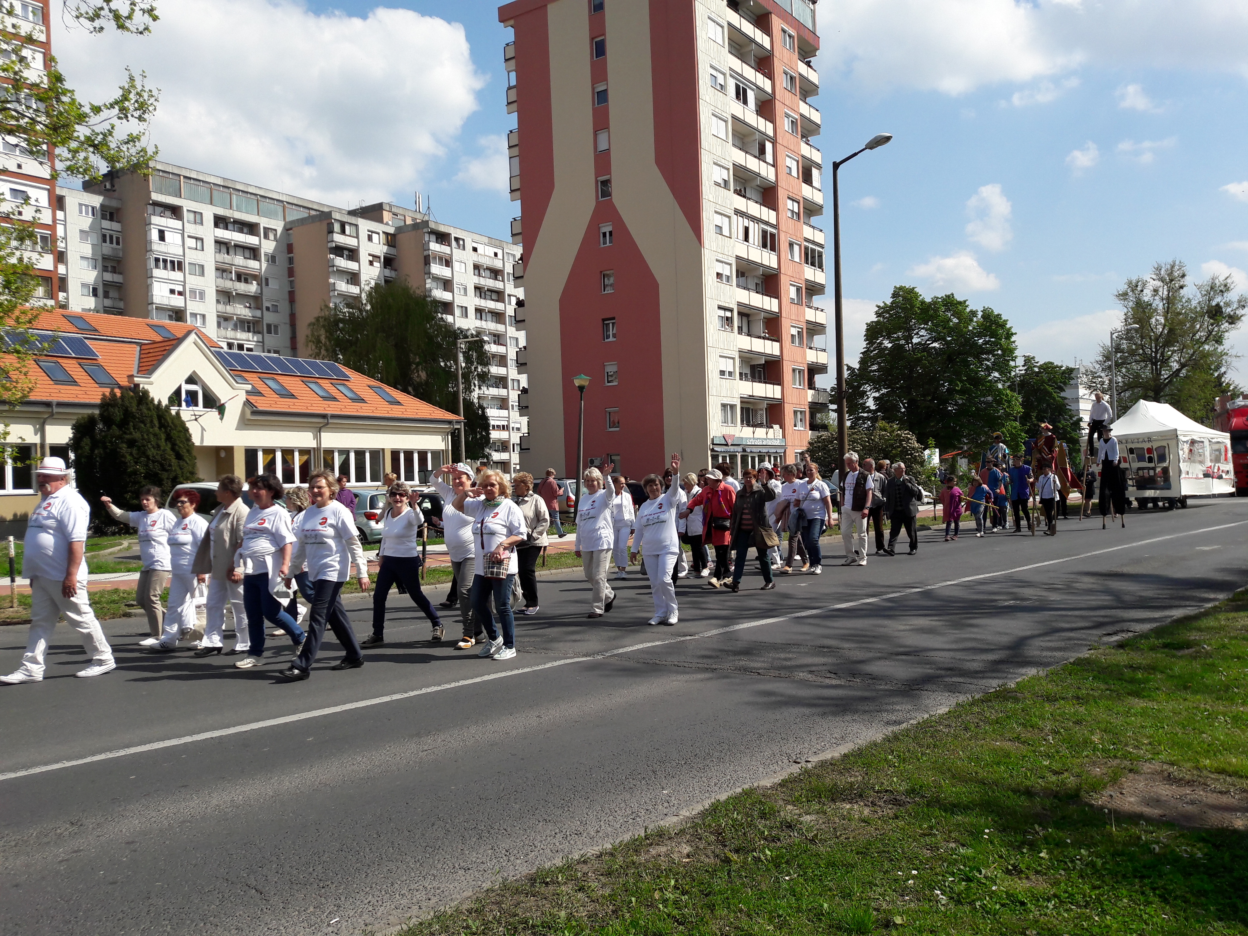 2017.04.30. Utca Tánc Fesztivál - Vonulás - Gólyalábasok, fekete kalapos táncosok, meridián tornások