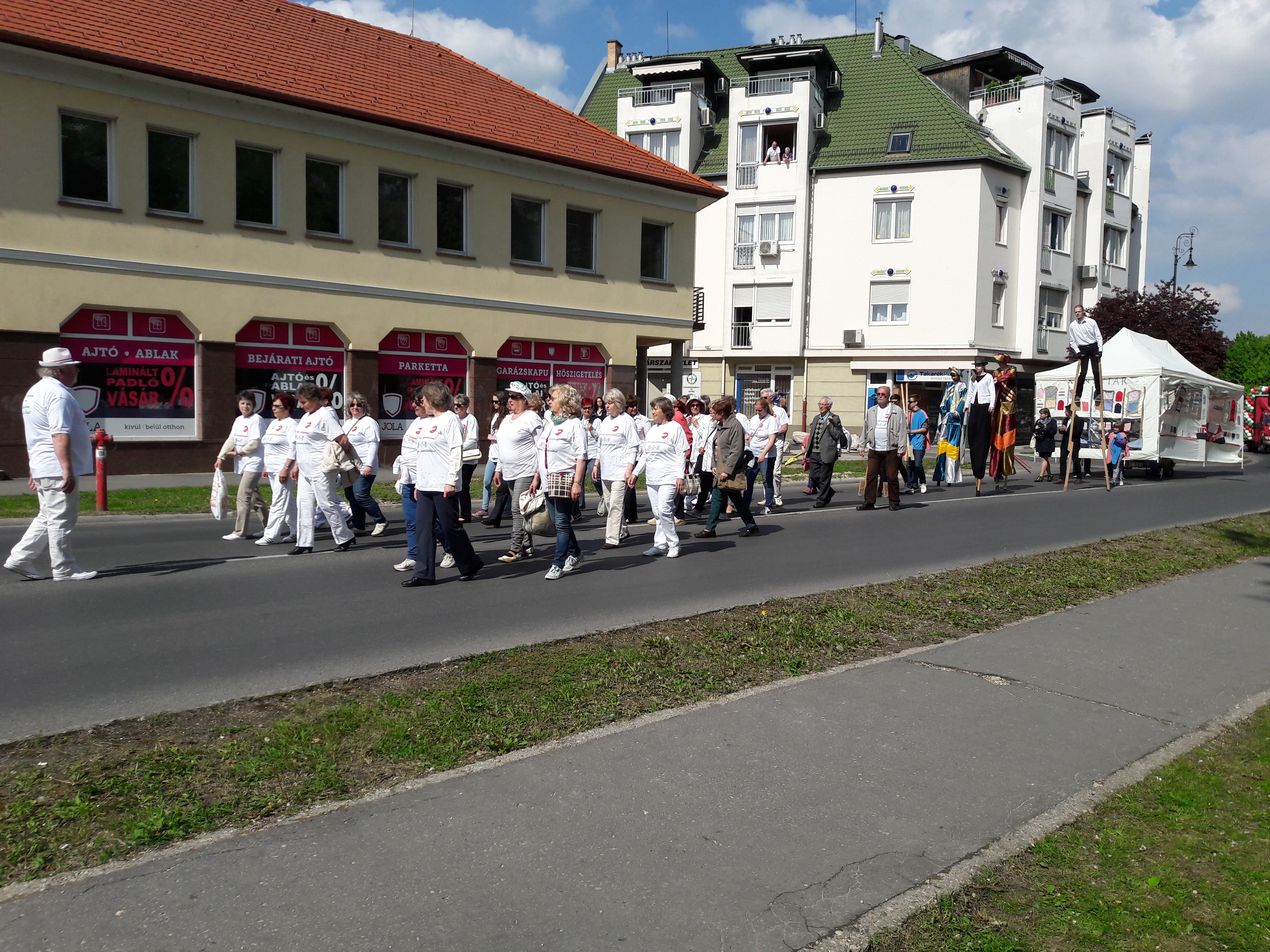 2017.04.30. Utca Tánc Fesztivál - Vonulás - Gólyalábasok, fekete kalapos táncosok, meridián tornások