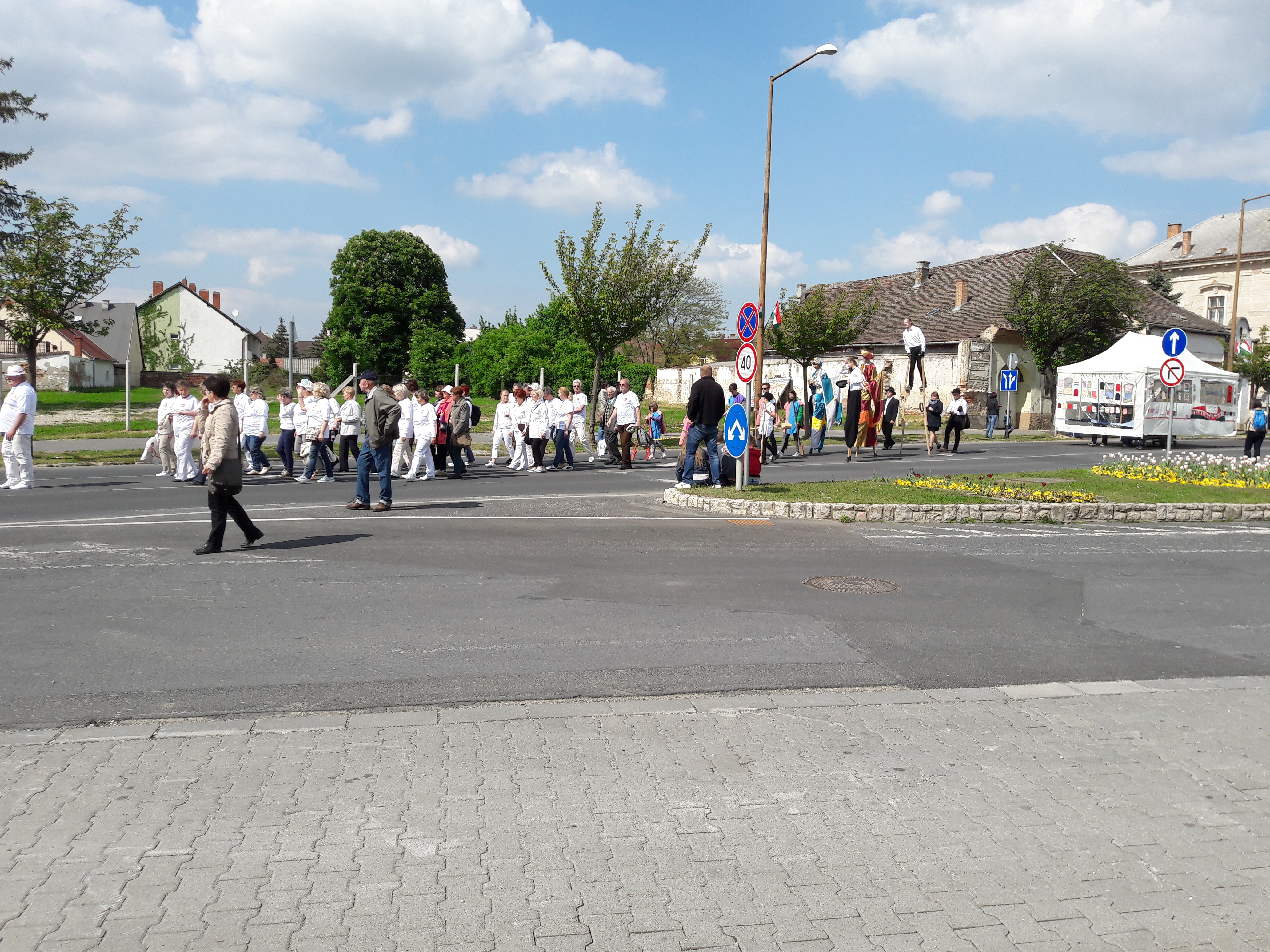 2017.04.30. Utca Tánc Fesztivál - Vonulás - Gólyalábasok, fekete kalapos táncosok, meridián tornások