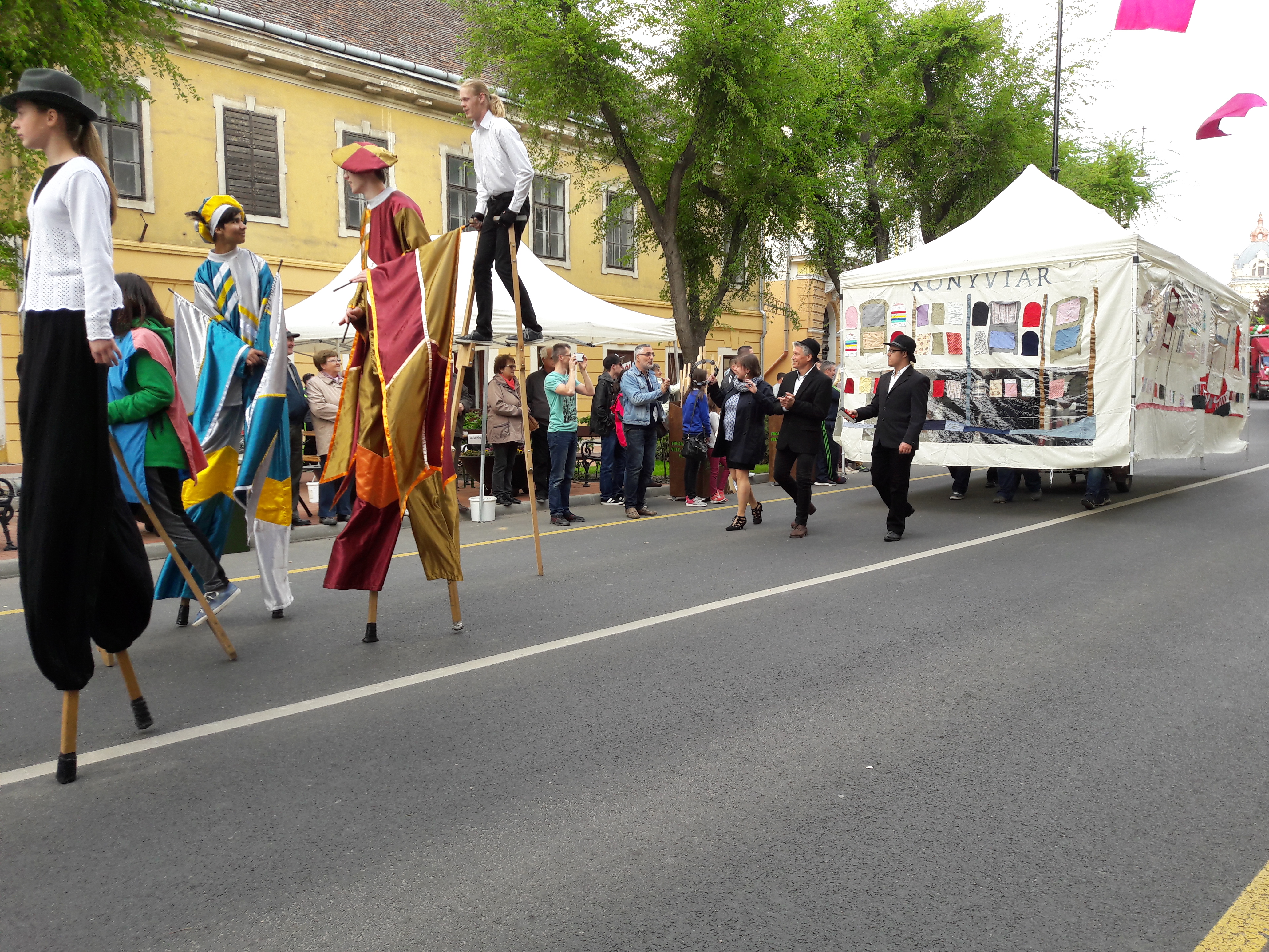 2017.04.30. Utca Tánc Fesztivál - Vonulás - Gólyalábasok, fekete kalapos táncosok, meridián tornások