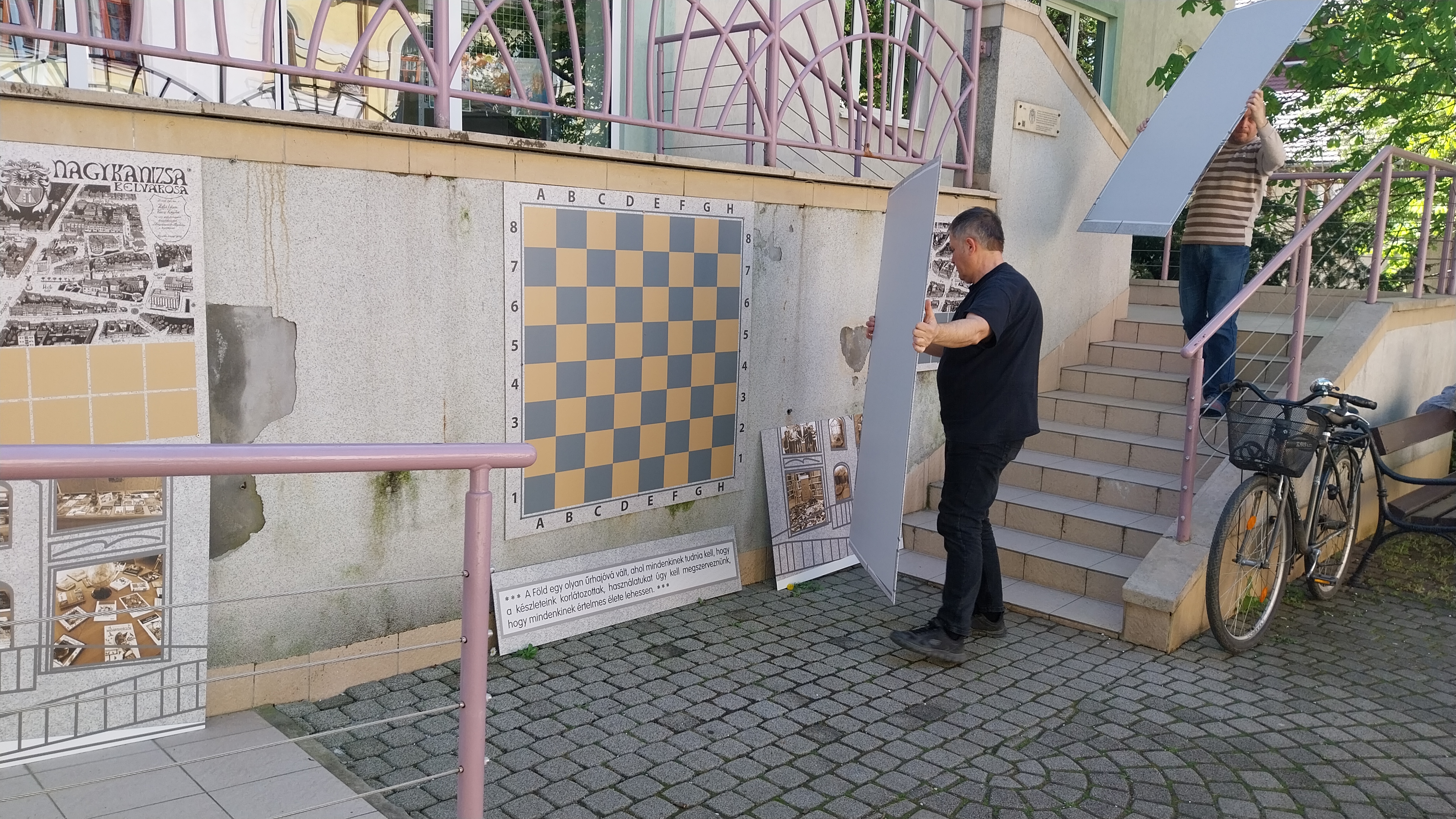2024.04.04. Jane Goodall freskó felszerelése a könyvtár elejére